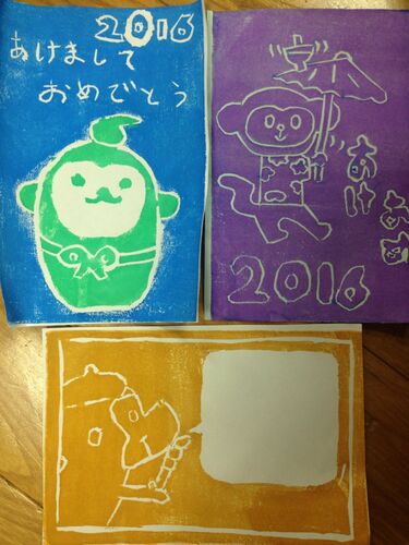 今年もあと3週間です。来年は申年ですね。子供達のお絵描き教室で毎年恒例の年賀状を版画で作りました。こちらの作品は小学生低学年の試し刷りです。猿の表情が可愛くて早速、何種類かもらってきました。